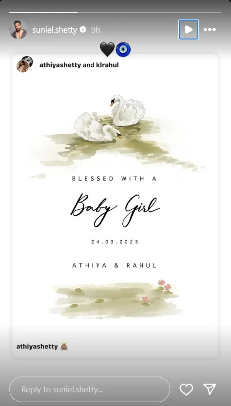 लेकिन सबसे ज्यादा ध्यान खींचा सुनील शेट्टी का नाना बनने पर रिएक्शन, जो सोशल मीडिया पर वायरल हो रहा है। सुनील शेट्टी ने बेटी अथिया और दामाद केएल राहुल के पोस्ट को फिर से शेयर करते हुए काले दिल और नजर ना लगने वाली इमोजी शेयर की, जो उनकी नाना बनने की खुशी को दर्शा रही थी।